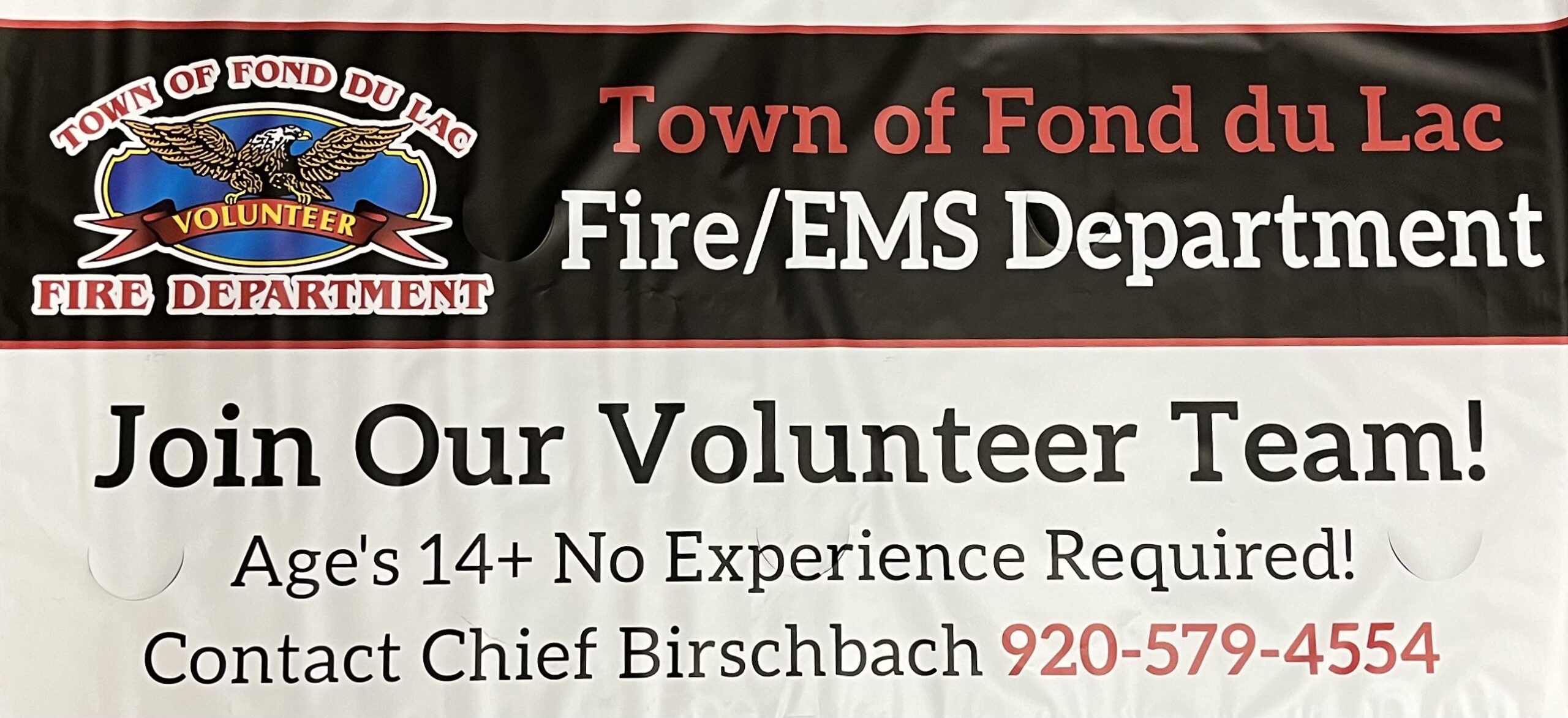The Town of Fond du Lac Fire/EMS Department is always accepting applications for Cadet Firefighters. Ages 14+, No Experience Necessary, we will put you through all required training!